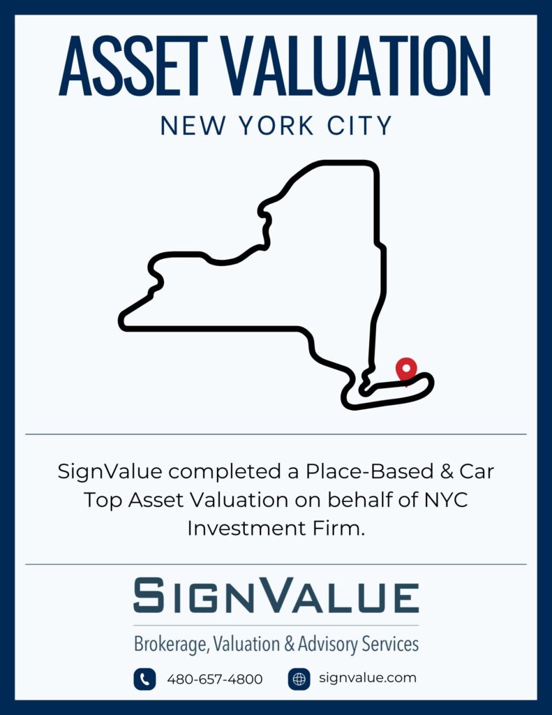 SignValue completed a Place-Based & Car Top Asset Valuation on behalf of NYC Investment Firm.